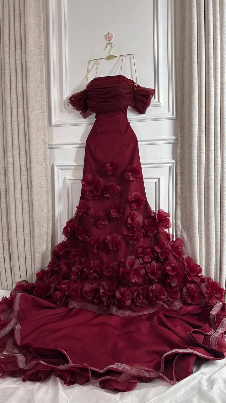 ارتقي بأناقتك المسائية إلى مستوى جديد تمامًا مع فستان سهرة ساحر، قطعة فنية تجمع بين الهيكل المصقول والنعومة الأنثوية. تم تصميم هذا الفستان بلون أحمر خمري غني (بورغوندي) ليكون الخيار الأمثل للمناسبات الفاخرة التي تتطلب حضورًا طاغيًا وسحرًا لا يُنسى.