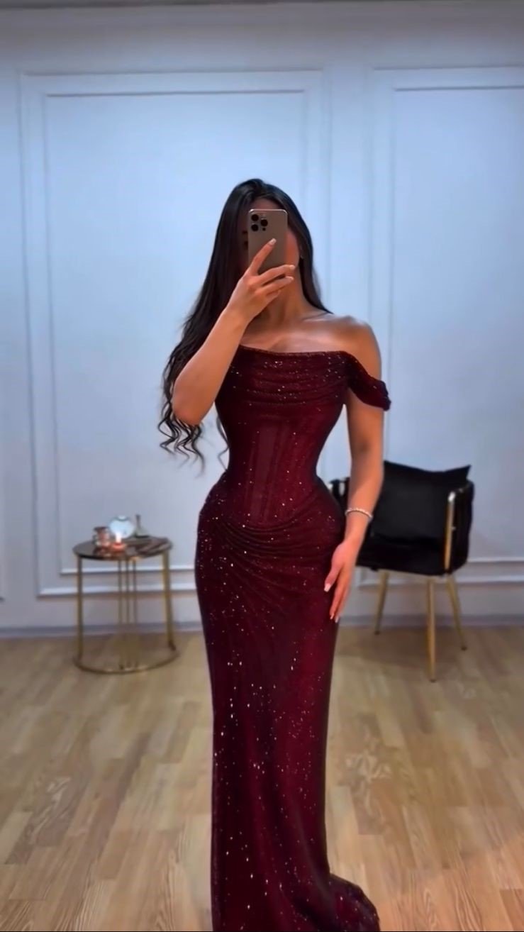 قصة الأوف شولدر (Off-shoulder): يتميز بياقة مكشوفة الأكتاف بأسلوب “درابيه” ناعم، مما يبرز منطقة الرقبة والكتفين بجمال رقيق وجذاب.