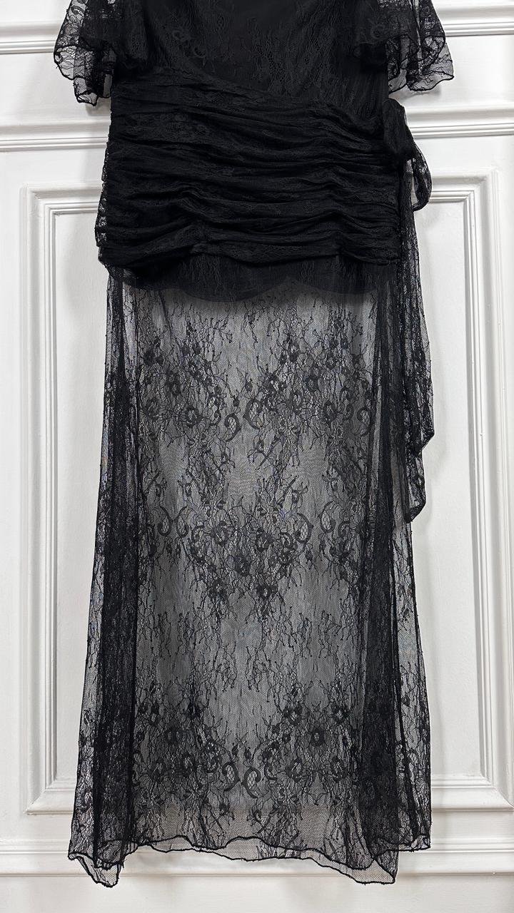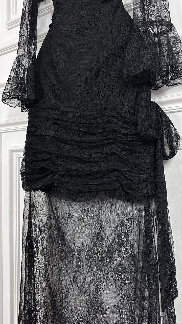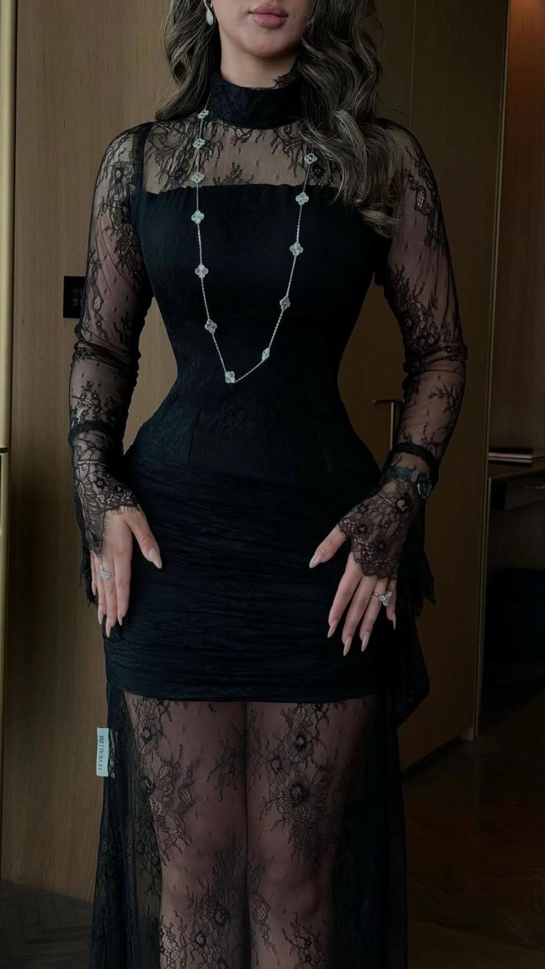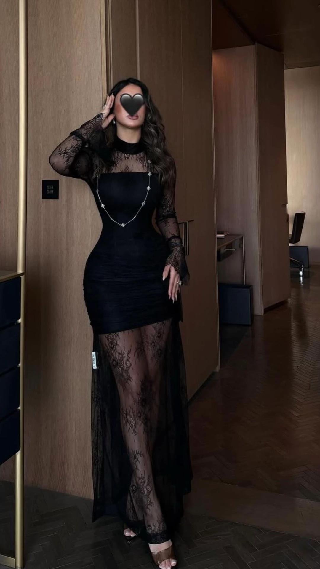اعتمدي إطلالة تجمع بين الغموض الساحر والرقي الكلاسيكي مع هذا الفستان ، تصميم يبرز أنوثتكِ بتفاصيل الدانتيل الدقيقة وقصة تبرز جمال القوام بأسلوب عصري وأنيق.
