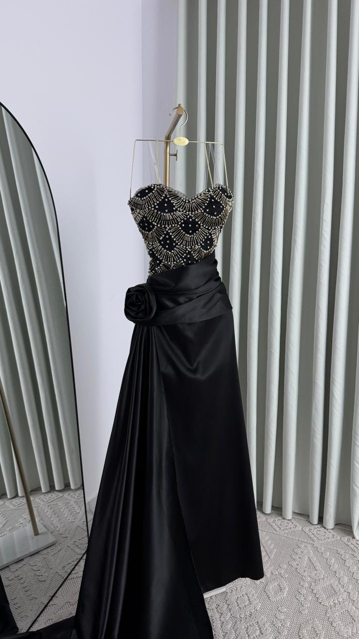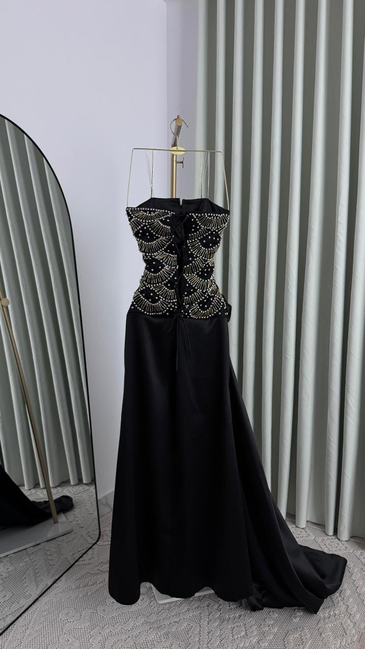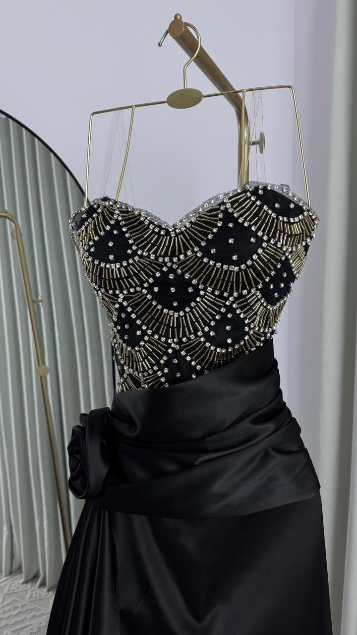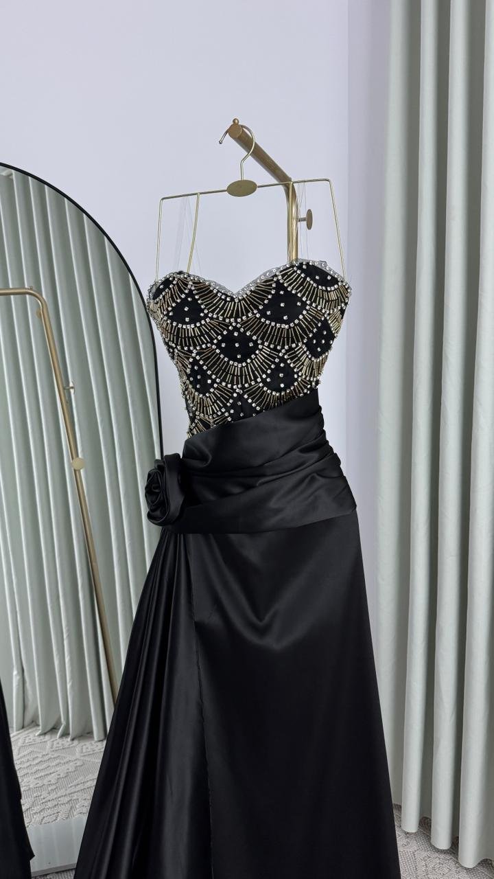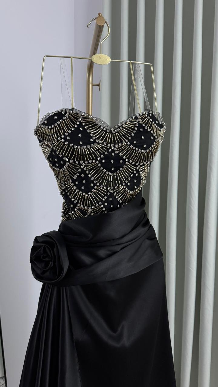 اللون: أسود ملكي (Jet Black) بتطريز ذهبي/كريستالي.