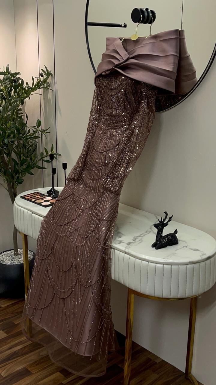 تألقي كالأميرات مع هذا الفستان، القطعة التي تجمع بين الهيكل الهندسي الراقي وبريق الكريستال الأخاذ. صُمم هذا الفستان ليمنحكِ حضوراً ملكياً في أرقى السهرات والمناسبات.